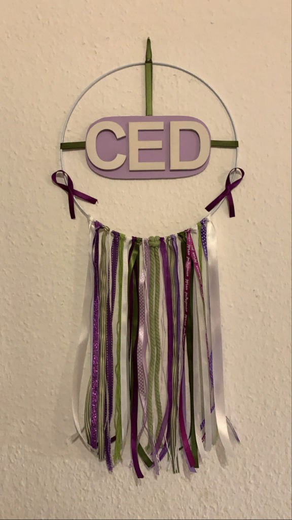 Hey, mein Name ist Meryem. Ein Jahr nach meiner Diagnose habe ich gelernt: Ich bin nicht allein! Als kleines Danke habe ich für den Chronisch Glücklich e.V. diesen Dekoring gebastelt. Und denkt auch ihr immer daran: Ihr seid nicht allein! 🙏🏼💜💚